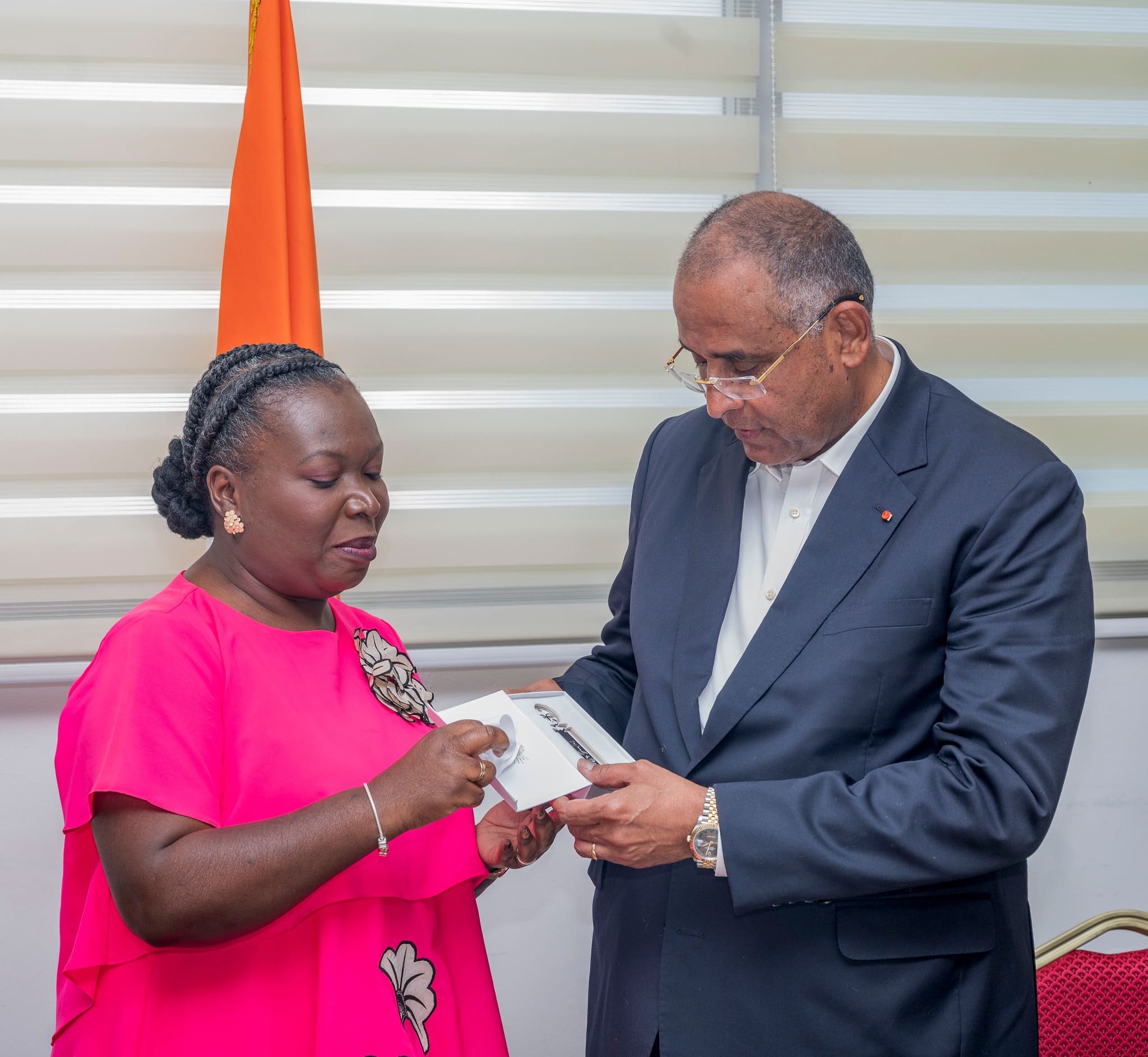 En présence des ministres Myss Belmonde Dogo, de la Solidarité et de la Lutte contre la pauvreté, Françoise Remarck, de la Culture et de la Francophonie ,Mamadou Touré, de la Promotion de la Jeunesse, de l’Emploi des Jeunes et du Service civique, N’Guessan Koffi de l’Enseignement technique, de la Formation professionnelle et de l’Apprentissage , Mr Patrick Achi , s’est dit heureux de recevoir des femmes avec des valeurs et des combats nobles.